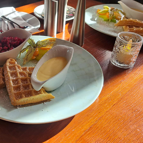 Morgens ab 8.00 Uhr können Sie Ihr Frühstück im Restaurant oder auf der Terrasse vom Büfett oder á la carte einnehmen. Das Frühstück vom Büfett ist für unsere Hausgäste inklusive. Mittags, ab 12.00 Uhr, können Sie wählen zwischen saisonal wechselnden Tagesgerichten (z. Bsp. verschiedene Fischsorten, Spargel, Kohlwochen oder Pilzen) oder den Gerichten in unserer abwechslungsreichen Speisekarte. Die Crew um Küchenchef Andreas Hietel erwartet Sie.